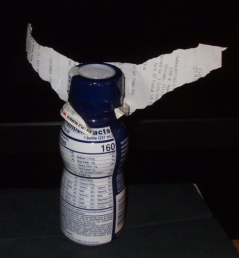 This take on Nike of Samothrace is an early entry to the challenge, posted to Twitter on March 29th, 2020. The original Hellenistic-era statue lives in the Louvre and is made out of marble, while the pandemic-era copy consists of an empty plastic bottle and a fast food receipt! I admire the simplicity of this one, as well as the subtle attention to detail. The dramatic lighting is a fun touch, and the curves of the bottle nicely mirror the contour of Nike’s body. There’s a lightheartedness here: I appreciate it now, and appreciated it even more in 2020. This challenge fostered a sense of community and collectivity in a time period marked by extreme isolation. At least, it fostered that community for art history nerds like myself!